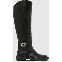 Schuh Dory Riding Boots Size & Fit True to size - order your usual size Standard fit Available in sizes 3 - 8 Details Dory Riding Boots by Schuh Black Fastens with a zip Low heel Gold side buckles Knee length design Lining: Other Materials Sole: Other Materials Upper: Other Materials
