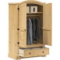 This classic wooden wardrobe offers ample storage space to keep your clothes, shoes and accessories neatly organised. Solid pine wood: Solid pine wood is a beautiful natural material. Pine wood has a straight grain, and the knots give the material its signature, rustic look. Made of solid pine wood, the storage cabinet is durable and sturdy.Ample storage space: The closet is equipped with a rail inside for hanging your clothes, a shelf and a drawer for additional storage space.Metal handles: The bedroom...
