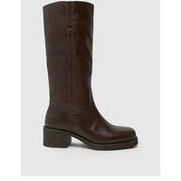 Schuh Damari Leather Pull On Boot Size & Fit True to size - order your usual size Standard fit Available in sizes 3 - 8 Heel height 5cm Details Damari Leather Pull On Boot by Schuh Brown Round toe Knee length boot height Block heel with chunky sole Pull on fastening Lining: Leather Sole: Other Materials Upper: Other Materials