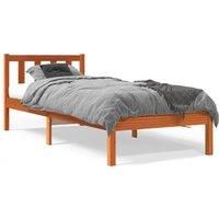 Enjoy a good night's sleep in this wooden bed frame! It makes a practical and decorative addition to your interior. Solid pine wood: Solid pine wood is a beautiful natural material. Pine wood has a straight grain, and the knots give the material its signature, rustic look.Stable bed frame: The wooden frame ensures sturdiness and stability.Sturdy slats: The plywood slats provide good weight distribution, ensuring that the mattress stays in place with every twist and turn of your body during sleep.Excell...