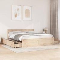 Add a modern touch to your bedroom with this bed frame with drawers! It makes a practical and decorative addition to your living space. Stable and long-lasting frame: Solid pinewood is known for its strength and durability. Its straight grains and distinctive knots contribute to its rustic charm.Plywood slats: The plywood slats provide good weight distribution, ensuring that the mattress stays in place with every twist and turn of your body during sleep.Storage function: The included bed drawers provide...