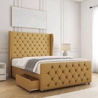 BSSPOKE Anna Plush Velvet Divan Bed 54"Headboard 2Drawers Footend No Mattress in Mustard | Size: Small Double