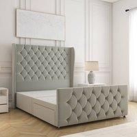 Experience luxury, comfort, and craftsmanship with our custom-made Divan Bed Base Set, tailored exclusively for you. Premium Quality Divan Beds: Customize your dream bed with up to 9 colors and 5 sizes. Choose from premium quality plush velvet materials and soft textured fabrics. Our beds follow UK Fire Regulation compliant. Complete Bed Set Includes: 54" Plush Velvet Upholstered Winged back Headboard and 20 Footboard No Mattress, No Drawers 12" Divan Bases with chrome legs UK Handmade Fast & Free del...