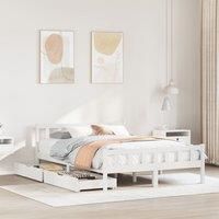 Get a better restful night's sleep from this bed frame! It makes a welcoming addition to any bedroom. Stable and long-lasting frame: Solid pinewood is known for its strength and durability. Its straight grains and distinctive knots contribute to its rustic charm.Slatted base for optimal support: The bed frame is equipped with a slatted base for support and breathability for your mattress.Make full use of space: This bed frame features two drawers underneath, providing storage for items like extra beddi...