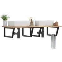 The wall mounted basin shelf securely attaches to the wall, providing an elegant and space-saving solution for your bathroom. Sturdy and long-lasting: This basin shelf is combined with a steel structure and a solid acacia wood top, making it sturdy, stable, and long-lasting. Space-saving: The floating basin shelf has ample space to store creams and small items. Thanks to the trapezium shape, you can hang towels or other things on the support to save space. Easy to use: The countertop comes undrilled to ...