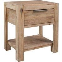 This nightstand will add a touch of rustic charm to your interior. The bedside cabinet can also be used as an end table or telephone stand. The bedside table is crafted from solid acacia wood, MDF and acacia veneer, which makes it very durable and hard-wearing. The brushed finish gives the nightstand an authentic, distressed and retro look and your home more of a traditional appearance. The sturdy top is ideal for keeping an alarm clock, a reading lamp, books, etc., or for displaying photo frames or oth...