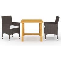This poly rattan garden dining set, with an elegant and contemporary design, will be a great choice for dining or relaxing in the garden. Solid acacia wood: Solid acacia wood is a beautiful natural material. Acacia wood is a tropical hardwood, which is dense, sturdy, and durable.High-quality chairs: Sturdy steel frame wrapped with weather-resistant hand-woven PE rattan, these garden armchairs are suitable for outdoor use.Comfortable design: Designed with curved backrest and armrest, these rattan chairs ...