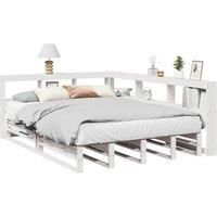 Get a better restful night's sleep from this bookcase bed! It makes a welcoming addition to any bedroom. Stable and long-lasting frame: Solid pinewood is known for its strength and durability. Its straight grains and distinctive knots contribute to its rustic charm.Slatted base for optimal support: The bed frame is equipped with a slatted base for support and breathability for your mattress.Ample storage space: This headboard features built-in storage to keep books, decorative items, and essentials org...