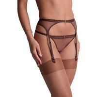 Aubade Sheer Emotion Suspender Belt. Garter belt with sheer mesh tulle and an intricate embroidery waist trim. This item is recommended for hand wash only. | Aubade Women's Sheer Emotion Suspender Belt in Brown | Size: 10