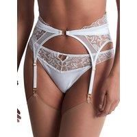 Aubade Satin Memories Waist Cincher. Waist cincher with integrated suspender belt, italian satin accents and intricate french embroidery. This product is recommended as hand wash only. | Aubade Women's Satin Memories Waist Cincher in Blue | Size: 8