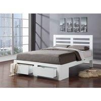 The New Bretton bed frame features a contemporary design with a storage drawer at the foot end. Made from solid hardwood with a white finish this bed will make a strong centrepiece in your room. Features: 2 drawers on smooth metal runners Solid slatted base Solid hardwood with a white finish All pieces delivered flat packed for self assembly in 3 boxes Box 1 164 x 103 x 7.5 (25.5kg) Box 2 169.5 x 17x 9.5 (26.5kg) Box 3 166.5 x 43.5 x 38 (10kg) Specifications: Dimensions: H:96.5 x W:158.5 x D:210.0 cm Co...