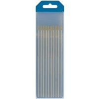 Lanthanum Tungsten (gold) electrodes are universal TIG electrodes that can be used for both direct and alternating current. They are particularlyrecommended for welding pure materials or Aluminium, Titanium, Nickel, Copper and Magnesium alloys. The Lanthanum oxide level (1.5%) in their composition gives them a slower wear and a less current consuming ignition than WR2 electrodes. They are recommended for low currents. - Manufacturers part numbers: 045354|GYS_