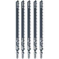 The T 344 D Speed for Wood Jigsaw Blade makes straight cuts in wood. Its sharp-ground, side-set teeth produce fast cuts. The high carbon steel blade material is appropriate for softwood and non-abrasive woodworking materials. Additionally, its large tooth pitch (4 mm) and long length (152 mm) cut wooden materials of up to 100 mm thickness. - Manufacturers part number: T344D