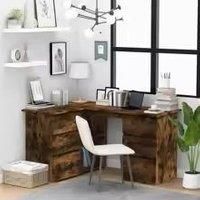 This compact wooden corner desk combines style with practicality, ideal for home offices. Its smart design fits snugly into corners, saving space while offering a comfortable work area.