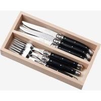 A beautiful, 12 piece traditional French style knife and fork set, presented in a wooden presentation tray. Make a statement at your dining table every day with Laguiole. Part of a stunning cutlery collection from the renowned Andr Verdier Laguiole range. Produced in France from the highest quality stainless steel, the range is built on a long history of quality and craftsmanship, with up to fifty manufacturing processes involved in their production. Each piece features the iconic Laguiole bee emblem fo... - Manufacturers part number: 706716LNRCB