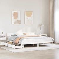 Get a better restful night's sleep from this bed frame! It makes a welcoming addition to any bedroom. Stable and long-lasting frame: Solid pinewood is known for its strength and durability. Its straight grains and distinctive knots contribute to its rustic charm.Slatted base for optimal support: The bed frame is equipped with a slatted base for support and breathability for your mattress.Make full use of space: This bed frame features two drawers underneath, providing storage for items like extra beddi...