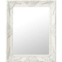 This beautifully designed wall mirror with an ornate frame creates a classic atmosphere in your dressing room. The antique-look mirror features a sturdy wooden frame that is meticulously crafted in a decorative Baroque pattern. Additionally, the bevelled edge gives this mirror a unique look. The mirror is ready to be wall-mounted thanks to the already installed hooks on the backboard.