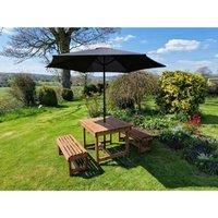 A truly stunning garden set,This beautiful arrangement has been built by British craftsmen in this unique style using the finest Swedish Redwood. The wood has a base treatment with anti-fungal, anti-mould and UV protection. You will need to re-treat annually to prevent from rot. Features: Sustainably Sourced Timber Handmade in UK Screwed and bolted Sits 4 Specifications: Dimensions: H:75.0 x W:150.0 x D:100.0 cm Colour: Brown Guarantee:1 Year Material: Wood Model Number: VT114 Kerbside delivery service:... - Manufacturers part number: VT114