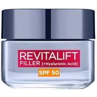 Replenish your skin with the L'Oréal Paris Revitalift Filler Hyaluronic Acid Anti-Ageing SPF50 Day Cream. Fast-absorbing, the face cream utilises macro, micro and micro-filler hyaluronic acid to encourage the look of a firmer, plumper visage. Ideal for people that feel their skin is lacking the look of elasticity, as fibroxyl plant extract promotes the illusion of tautness. SPF50 offers protection against damage caused by the sun, along with defence against UVA and UVB rays. Deeply-hydrating, the day cream helps to lock in moisture for long-lasting softness.