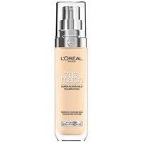 The UK's #1 Foundation Brand *Discover True Match, a skincare infused foundation, now available in 48 shades. The formula provides perfect, natural and true-to-skin coverage. Now upgraded with a new skin-matching technology, which includes up to 6 different pigments for a more precise match. Enriched with Hyaluronic Acid. The formula provides up to 24H hydration. Improves skin quality in 2 weeks.*"Source 2022 NielsenIQ data, value and units, Cosmetics Face, Foundation category brand (client defined) 52 w/e 21/05/22, United Kingdom (GB+NI) Total Coverage" | Debenhams True Match Liquid Foundation with SPF & Hyaluronic Acid | Size: 30ml