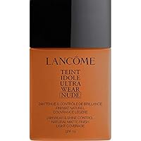 Ace your base with the Lancôme Teint Idole Ultra Wear Nude Foundation; a super-lightweight liquid foundation that coats skin in a ‘second-skin’ light coverage that’s so discreet, it delivers a bare-faced ‘no-makeup’ effect. Weightless and resistant to water and sweat, the pore-minimising foundation glides on and blends seamlessly, leaving behind a sheer, matte texture that lasts for 24 hours and allows skin to breathe. Protecting the complexion from harmful UV damage with SPF 19, the natural-looking nude foundation’s results is flawless skin that allows your natural radiance to shine through.Light CoverageUp to 24 Hour WearNatural Matte FinishSkin feels like it can breatheMinimizes pore appearanceWater resistantSweat resistantS...