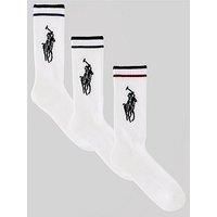 When you need socks that are designed and engineered for performance as much as for their looks, then these three pairs of men’s Ralph Lauren Big Polo Technical Cotton Crew Sports Socks fit the bill. Decorated by a large woven Polo Pony motif, set on a crew ribbed leg, and with striped and tipped tops, the socks certainly tick the style boxes. But they are also packed with technical features to make your sports activities healthier for your feet. With a shock-reducing cushioned half foot and seamless toe to prevent rubbing and friction blisters, these socks have breathable mesh tops and are knitted using a fabric blend that assists moisture management, wicking dampness away from the foot quickly. Built-in arch support gives gentle pre...