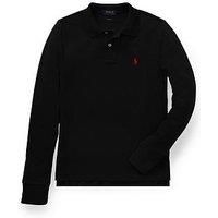 Ralph Lauren Boys Long Sleeve Polo Shirt - Black A Ralph Lauren icon, this long-sleeve Polo shirt is crafted from comfortable cotton mesh and finished with our signature embroidered Pony. Material & Care Material Content: 100% Cotton Washing Instructions: Machine Washable