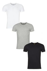 In a lightweight, 100% pure cotton construction, these stretch jersey Ralph Lauren Plain Cotton Stretch Crew Neck T-shirts are classic straight cut tees with a neat slim fit. The pack has a mix of three shades — white, black and heather — so they cover all three most frequently needed undershirt colours. The shirts have a label-less design so there’s no irritation or tags to cut out. Each Ralph Lauren shirt has a signature embroidered Polo Pony logo to the left side of the hem.