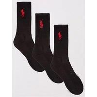 When Ralph Lauren say ‘Classic’, they mean exactly what they say. These Ralph Lauren Classic Cotton Sport Socks are everything you’d expect from this style, but filtered through the iconic brand’s high standards. These three pairs of men’s crew length sports and leisure socks are fully ribbed and elasticated in the legs with the ribs running right to the top of the leg, creating a ‘no-cuff’ look. The socks have a high cotton content for a natural feel that offers excellent breathability. The feet prioritise comfort, with terry loop cushioning in the soles, toes and heels, and use flat, smooth toe seams to prevent rubbing and pressure. They have arch support bands, lifting the mid-foot and helping to keep the socks perfectly in place. Of course, the signature contrast colour Polo Pony logo embroidery features, placed perfectly at the legs.