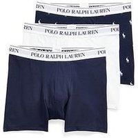 A mix including two plain selection and a style patterned all over with the iconic Polo Pony emblem, all topped by ‘Polo Ralph Lauren’ logo elasticated woven waistbands, this boxed triple pack of Ralph Lauren Stretch Cotton Boxer Briefs puts designer branding to the fore. These men’s 95% cotton rich stretch jersey boxers are made with supportive twin layer front pouches and comfortable seat panel. With a regular height rise, these close-fitting Ralph Laurene boxer briefs are constructed with chafe-preventing flat overlocked seams and have 8cm long inseams.