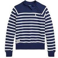 Polo Ralph Lauren Girls Stripe Button Sweatshirt Size & Fit Regular fit Available in sizes 1.5-2 Years - 16 Years Details Girls Stripe Button Sweatshirt by Polo Ralph Lauren Navy Long sleeves Stripe Button fastening Crew neck Small logo Material & Care Material Content: 84% Cotton, 16% Polyester Washing Instructions: Machine Washable