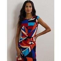 Lauren by Ralph Tessanne Short Sleeve Day Dress Size & Fit True to size - order your usual size Straight fit Maxi length Available in sizes 8 - 18 UK size 12 has a 115 cm body length Dress length taken from centre back of neck and changes 1.27 cm between sizes Details Tessanne Short Sleeve Day Dress by Lauren by Ralph Lauren Blue A-line silhouette Rounded neckline Cap sleeves Pleated twist-front accent on bodice Back waist seam Lined bodice Concealed centre back zip with hook-and-eye closure - Manufacturers part number: W87LT