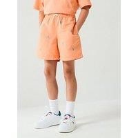 Polo Ralph Lauren Boys Traveller All Over Pony Swim Shorts Size & Fit Relaxed fit Available in sizes min - max Details Boys Traveller All Over Pony Swim Shorts by Polo Ralph Lauren Orange Elasticated waist detail with drawstring Tie fastening Logo print Seam pockets Material & Care Material Content: 100% Polyester Washing Instructions: Machine Washable
