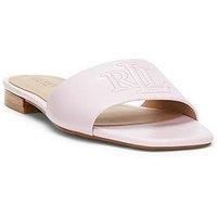 Lauren by Ralph Lauren EVERLEY SLD-SANDALS-SLIDE Crafted with supple nappa leather, the Everley slide sandal is designed with a squared toe and an "LRL" bomb logo at the vamp. Material Content: Upper: 100% Cow Leather / Sole: 100% Rubber / Lining: 100% Sheep Leather Washing Instructions: Wipe Clean 0.5inch (15 mm) heel height. Open toe. Padded insole. Leather lining.