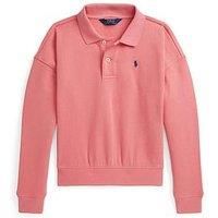 Polo Ralph Lauren Girls Collar Sweatshirt Size & Fit Regular fit Available in sizes 7-Years (S) - 16=Years (XL) Details Girls Collar Sweatshirt by Polo Ralph Lauren Pink Polo collar Button front Long sleeves Applique logo on back Embroidered logo on chest Material & Care Material Content: 60% Cotton, 40% Polyester Washing Instructions: Machine Washable