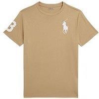 Polo Ralph Lauren Boys Logo Short Sleeve T-Shirt Size & Fit Available in ages: 2 to 16 years Details Boys Logo Short Sleeve T-Shirt by Polo Ralph Lauren Beige Breathable soft cotton Signature embroidered Big Pony on the left chest Crewneck Short sleeves Twill "3" patch on the right sleeve Machine washable Material & Care Material Content: 100% Cotton Washing Instructions: Machine Washable - Manufacturers part number: WMJFB