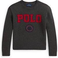 Polo Ralph Lauren Girls Crew Neck Sweater Size & Fit Regular fit Available in sizes S-XL Details Girls Crew Neck Sweater by Polo Ralph Lauren Dark Grey Long sleeves Crew neckline Knitted branding Logo patch Material & Care Material Content: 100% Cotton Washing Instructions: Machine Washable
