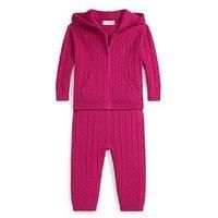 Polo Ralph Lauren Baby Girls Hoodie And Jog Pant Set Size & Fit Available in sizes 3 Months - 24 months Details Baby Girls Hoodie And Jog Pant Set by Polo Ralph Lauren Dark Pink Hooded Long sleeve Front pockets Zip up fastening Embroidered logo Elasticated waistband Cable knit Material & Care Material Content: 100% Cotton Washing Instructions: Machine Washable - Manufacturers part number: WMJJ5