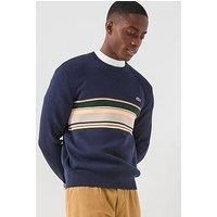 Lacoste French Made Cotton And Wool Blend Crew Neck Knitted Jumper Size & Fit True to size - order your usual size Regular fit Available in sizes S - 2XL (S:35"-37", M:38"-40", L:41"-43", XL:44"-46", 2XL:48"-49") Details French Made Cotton And Wool Blend Crew Neck Knitted Jumper by Lacoste Navy Knitted Crew neck Long sleeves Stripe detail Small logo Ribbed cuffs and hem Material & Care Material Content: STRIPED PATTERN:48% COTTON 38% POLYESTER 14% WOOL /SHELL:80% COTTON 20% WOOL Washing Instru...