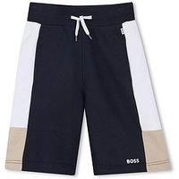 BOSS Boys Colour Block Jog Shorts Size & Fit True to size - order your usual size Regular fit Available in sizes 4 years - 16 years Details Boys Colour Block Jog Shorts by BOSS Navy Colour block Elasticated waist with drawstring Side slip pockets Small logo Material & Care Material Content: 87% Cotton, 13% Polyester - Trimming: 97% Cotton, 3% Elastane - Lining: 100% Cotton Washing Instructions: Machine Washable