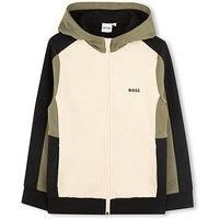 Boss Boys Colour Block Zip Through Hoodie - Cream