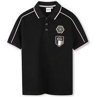 BOSS Boys Football Polo Shirt Size & Fit Regular fit Available in sizes 4 years - 16 years Details Boys Football Polo Shirt by BOSS Black Short sleeves Polo collar Button front fastening Tipped details Logo prints Material & Care Material Content: 100% Cotton Washing Instructions: Machine Washable