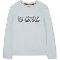 BOSS Boys Logo Sweatshirt Size & Fit Regular fit Available in sizes 4 years - 16 years Details Boys Logo Sweatshirt by BOSS Light Blue Long sleeves Crew neck "BOSS" logo printed on the front Material & Care Material Content: 87% Cotton, 13% Polyester - Trimming: 97% Cotton, 3% Elastane Washing Instructions: Machine Washable