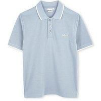 BOSS Boys Short Sleeve Logo Polo Shirt Size & Fit Regular fit Available in sizes 4 years - 16 years Details Boys Short Sleeve Logo Polo Shirt by BOSS Light Blue Logo print Short sleeves Polo collar Button fastening Material & Care Material Content: 100% Cotton Washing Instructions: Machine Washable - Manufacturers part number: J52329