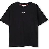 HUGO Boys Small Logo T-Shirt Size & Fit Regular fit Available in sizes 4 years - 16 years Details Boys Small Logo T-Shirt by HUGO Black Logo print Short sleeves Crew neck Material & Care Material Content: 100% Cotton - Lining: 95% Cotton, 5% Elastane Washing Instructions: Machine Washable - Manufacturers part number: G00434