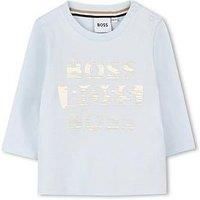 BOSS Baby Boys Multi Logo Long Sleeve T-Shirt - Light Blue Long-sleeved T-shirt in 100% cotton jersey, fancy logo printed on the front, snap opening at the shoulder. Material Content: 100% Cotton - Lining: 95% Cotton, 5% Elastane Washing Instructions: Machine Washable