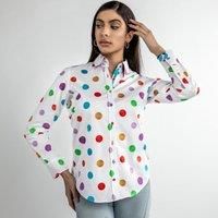 Brighten up your wardrobe with this playful Multicolour Polkadot Print Shirt. The vibrant polka dots pop against the smooth satin and cotton blend, making it a fun and lively choice for any occasion. Whether youre dressing it up with a pencil skirt for a quirky office look or pairing it with jeans for a laid-back weekend vibe, this shirt is sure to turn heads. The colorful dots add a cheerful touch to any outfit, making it perfect for both casual and semi-formal events. Embrace the joy of polka dots and...