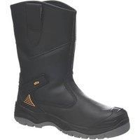 Leather safety rigger boots with steel toe cap and steel penetration-resistant midsole. Waterproof and ideal for professional work on wet or muddy ground. Padded ankle for added comfort and support all day. Safety Rating: S3 WR SRA 200J Steel Toe Cap Steel Penetration-Resistant Midsole Wide Fit Oil-Repellent Sole Not Tested for Sole Heat Resistance Waterproof Anti-Static Sole Shock-Absorbing Heel Reinforced Heel - Manufacturers part number: 184FY