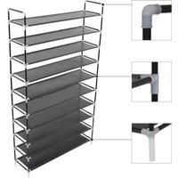 This minimalistic shoe rack is an ideal storage solution for your shoes. It has a tubular metal frame, which is lightweight yet sturdy, making the shoe rack easy to move around and quite durable. It has ten generous shelves that are made of a non-woven fabric and have ample space to keep your shoes organised and out of the way. Assembly is easy.