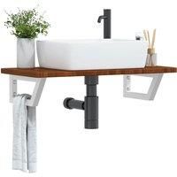 The wall mounted basin shelf securely attaches to the wall, providing an elegant and space-saving solution for your bathroom. Sturdy and long-lasting: This basin shelf is combined with a steel structure and a solid oak wood top, making it sturdy, stable, and long-lasting. Space-saving: The floating basin shelf has ample space to store creams and small items. Thanks to the trapezium shape, you can hang towels or other things on the support to save space. Easy to use: The countertop comes undrilled to all...